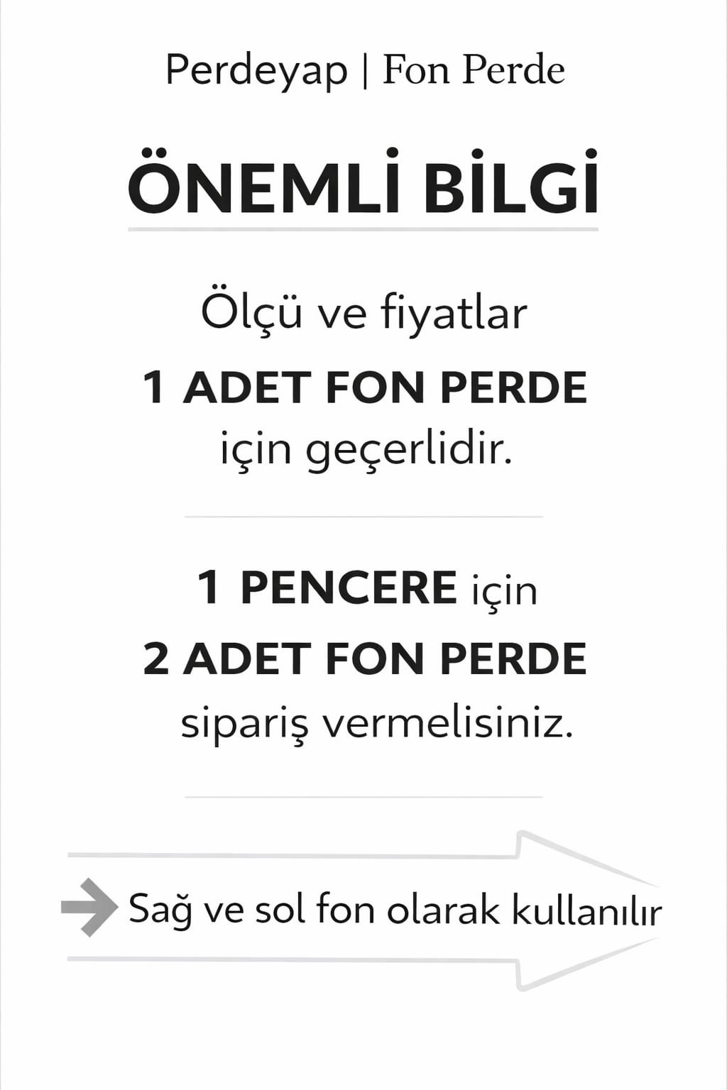 - Eğer duvarınızın ölçüsü 3 mt ve üzeri ise 2 tane 90 cm en şeklinde fon perde sipariş verebilirsiniz.