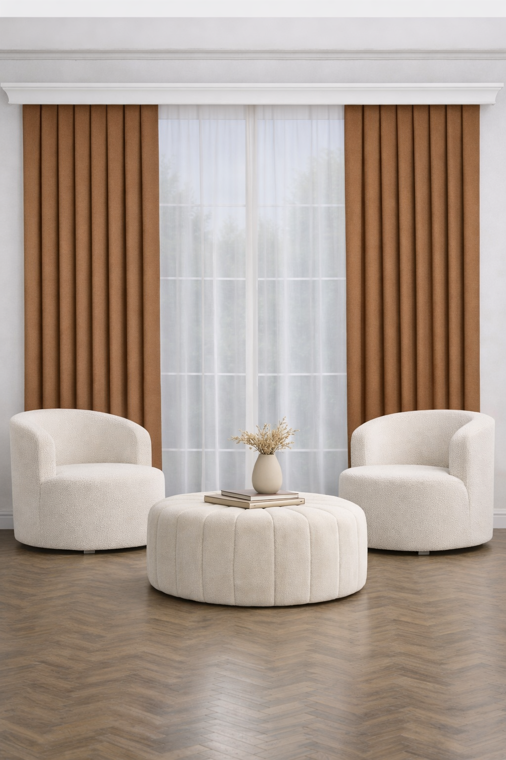 PerdeYap Kakao Rengi Ada Fon Perde Tek Kanat 1/3 Sık Pile